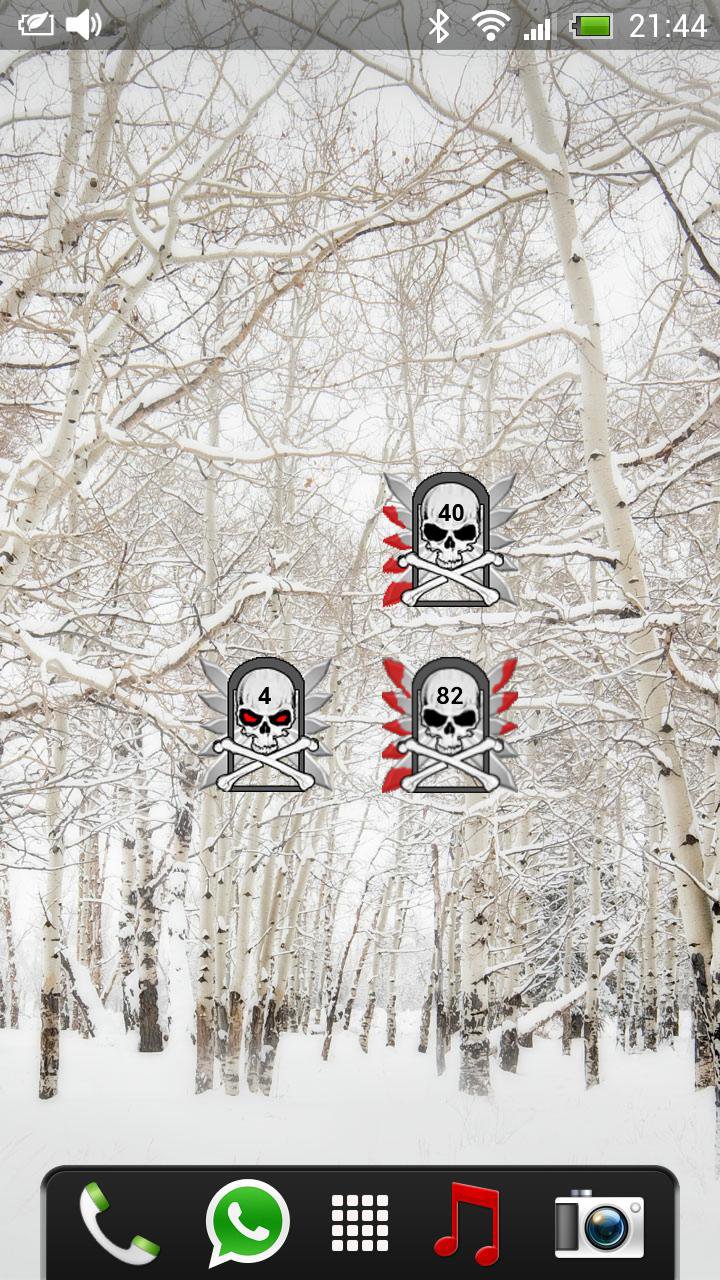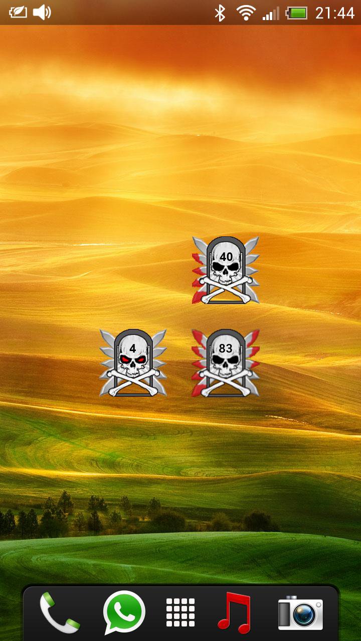 الترا الشر Skull Battery Widget . بما في ذلك مستوى البطارية الذي يمكن تحديده في شريط الحالة وعلى الجمجمة. سيتم عرض الخيارات إذا نقرت على القطعة.